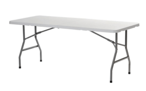 Valkoinen simpukkataittopöytä kantokahvalla, 4 kpl.